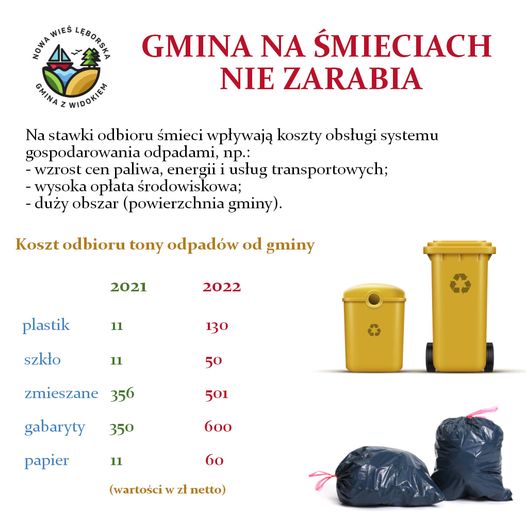 W związku z pojawiającymi się w przestrzeni publicznej nieprawdziwymi informacjami Wójt Gminy Nowa Wieś Lęborska przedstawia czynniki determinujące wysokość stawek i harmonogram odbioru odpadów komunalnych w 2022 roku na terenie gminy.